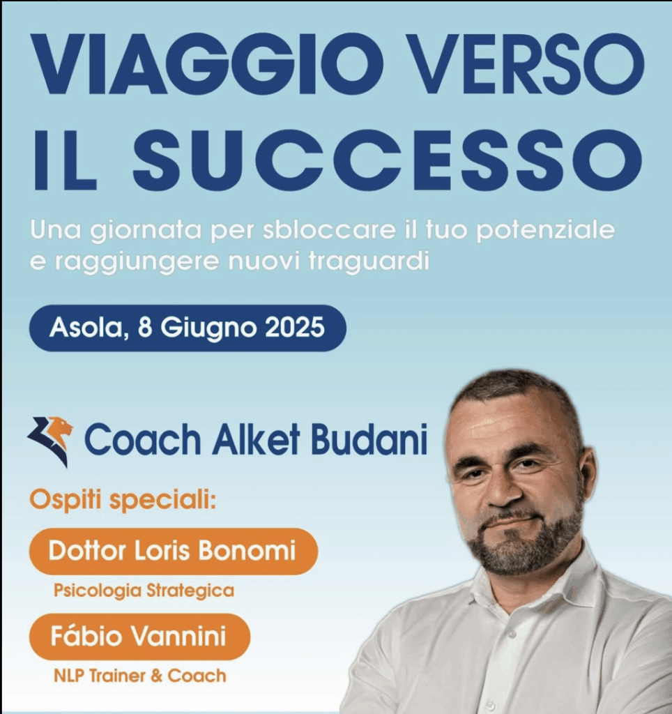 L’evento “Viaggio verso il Successo” si terrà l’8 giugno ad Asola e sarà un’esperienza trasformativa guidata da Alket Budani, con la partecipazione di Loris Bonomi e Fabio Vannini. È pensato per persone ambiziose che vogliono superare blocchi, acquisire strumenti concreti e dare una svolta reale alla propria vita personale e professionale. I posti sono limitati e l’iscrizione è aperta.